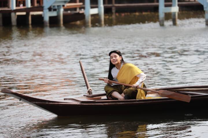 เฌอปรางBNK48 เผยว่า “เรื่องนี้รับบท ลำจวน ค่ะ ช่างพูดช่างคุย ช่างเจรจา เจ้าบทเจ้ากลอน พอได้ทราบว่าจะได้เล่นละครเรื่องนี้ดีใจมาก เพราะถือว่าเป็นเรื่องที่ทรงคุณค่า และให้อะไรกับคนดูมากกว่าแค่ความสนุกของละคร ยังมีเกร็ดของประวัติศาสตร์ที่น่าสนใจให้เราได้ทราบสอดแทรกอยู่ด้วย ซึ่งท้าทายความสามารถสุดๆ เพราะได้เล่นอะไรที่หลากหลาย เป็นบทละครที่มีพัฒนาการตั้งแต่วัยรุ่นไปจนถึงผู้ใหญ่ และด้วยความที่ลำจวนอยากเป็นกวีหญิง ก็ต้องอ่านเขียนเก่ง ซึ่งผิดกับเฌอที่ไม่เก่งภาษาไทย เรื่องนี้จึงต้องมีการเวิร์คช็อปค่อนข้างหนัก เฌอต้องเรียนทั้งการแต่งกลอน อ่านกลอน มีต้องเรียนร้องเพลงไทยเดิม มีเรียนรำไทย ยังมีเรียนวาดภาพร่วมกับพี่โทนี่ พี่เต๋า สมชายด้วย เพราะในเรื่องเราไปทุกที่ ลุยทุกอย่างจริงๆ เรียกว่าสมบุกสมบันมากๆ เลยค่ะ ยิ่งกว่าลุยไฟ ตกน้ำบ่อยมาก เรือล่มจริงๆ ก็มี ฝ่าโควิดก็ผ่านมากันได้ แต่ก็เป็นกองที่ทำงานแล้วมีความสุขสนุกมากๆ ทุกคนตั้งใจทำงานกันเพื่อให้ผลงานออกมาดีที่สุด ถ่ายทำกันมากว่า 2 ปี คนที่ปวดหัวกับเฌอมากที่สุดคงจะหนีไม่พ้น พ่ออี๊ด สุประวัติ ที่เฌอจะมีคำถามคอยถามพ่อตลอด ขอบคุณพ่อมากๆ เลยค่ะ รวมทั้งพี่ๆ นักแสดงหลายๆ ท่านที่คอยสอน รับส่งบท รับส่งอารมณ์กันจนเราเชื่อว่าเราเป็นตัวละครนั้นได้จริงๆ เรื่องนี้ทำให้เฌอได้เรียนรู้อะไรเพิ่มขึ้นเยอะมาก เป็นละครอีกหนึ่งเรื่องที่รักมากๆค่ะ อยากให้ได้รับชมกันเยอะๆ เชื่อว่าทุกคนจะชอบกันแน่ๆ ฝากด้วยนะคะ”