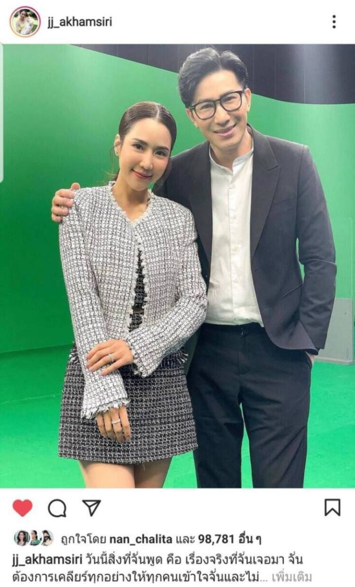พิธีกรสาว บุ๋ม ปนัดดา ยังคอมเม้นใต้โพสตัวเอง และแท็กนางเอกสาว จั๊กจั่น อีกว่า “ขอโทษจริงๆ นะจั่น @jj_akhamsiri ”
