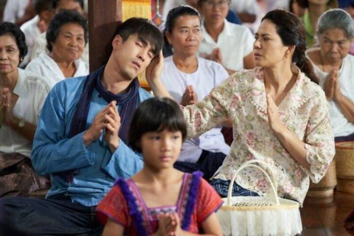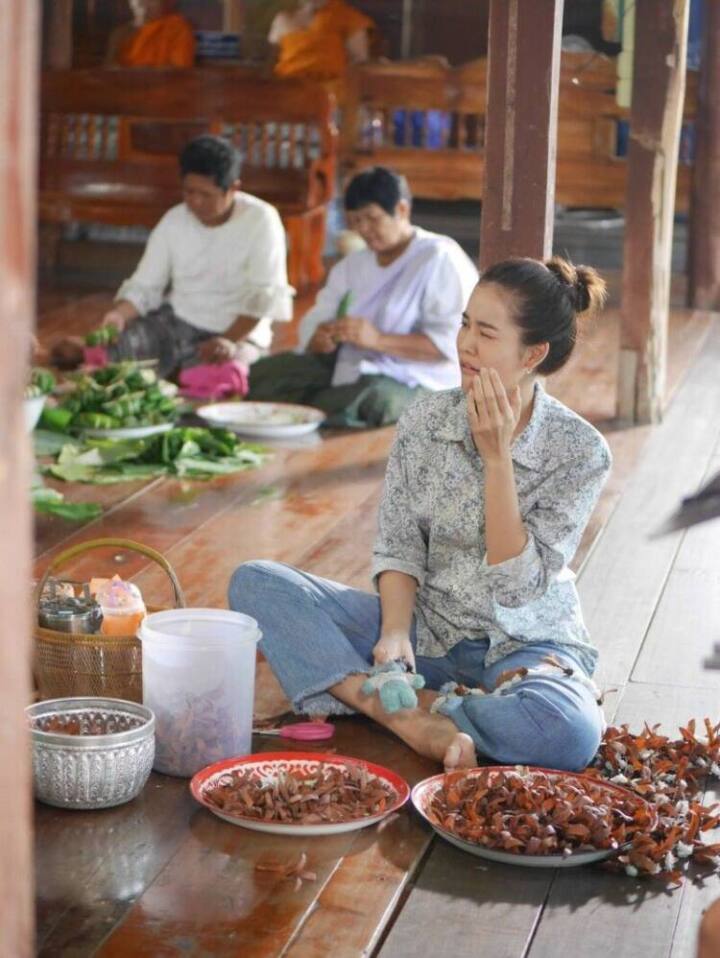 ในฉากนั้น วันเตรียมงาน ณเดชน์ ไม่ได้มาร่วมงานเพราะเพิ่งเดินทางกลับมาจากกรุงเทพ มาอยู่บ้านหนอกกะแยง ซึ่งพอวันรุ่งขึ้น น้ำฝน สรวงสุดา ซึ่งรับบทเป็นแม่ จึงชวนให้ณเดชน์ มาฟังเทศน์ด้วยกัน แต่ด้วยความที่ณเดชน์นั้น ยังไม่อินกับบรรยากาศของงานบุญของหมู่บ้านนัก งานนี้เลยทำให้เจ้าตัว นั่งหลับไปตามระเบียบ ขณะที่พระกำลังเทศน์