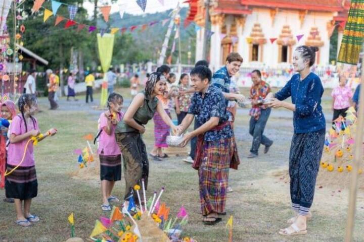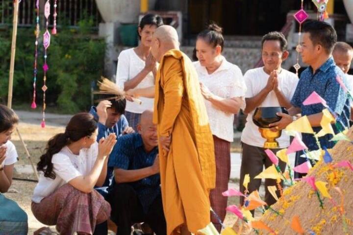 ซึ่งในช่วงเช้า ก็จะมีฉากการตักบาตรก่อน แสดงให้เห็น ถึงวัฒนธรรมอันดีงามของคนไทยของเราก่อน หลังจากนั้น จึงเป็นงานสนุกสนาน ตามประเพณี ทั้งรดน้ำดำหัวผู้ใหญ่ และไล่ฉีดน้ำกันแบบเด็ก ๆ ขอบอกเลยว่า ณเดชน์ คือพระเอกของเราเรื่องนี้ อินกับงานสงกรานต์มาก เล่นเกินร้อย สนุกเกินล้าน ตั้งแต่ตอนที่เข้าฉากรดน้ำ แม่น้อย โพธิ์งาม (ยายเพียร) ณเดชน์ก็จะเริ่มอินกับบรรยากาศนี้แล้ว พอถึงช่วงบ่าย เป็นฉากเล่นน้ำสงกรานต์ ไม่ต้องบอกเลย ว่าสนุกสนานกันขนาดไหน ขอบอกว่าดูฉากนี้ แล้วอยากกลับบ้าน ไปเล่นสงกรานต์แน่นอน