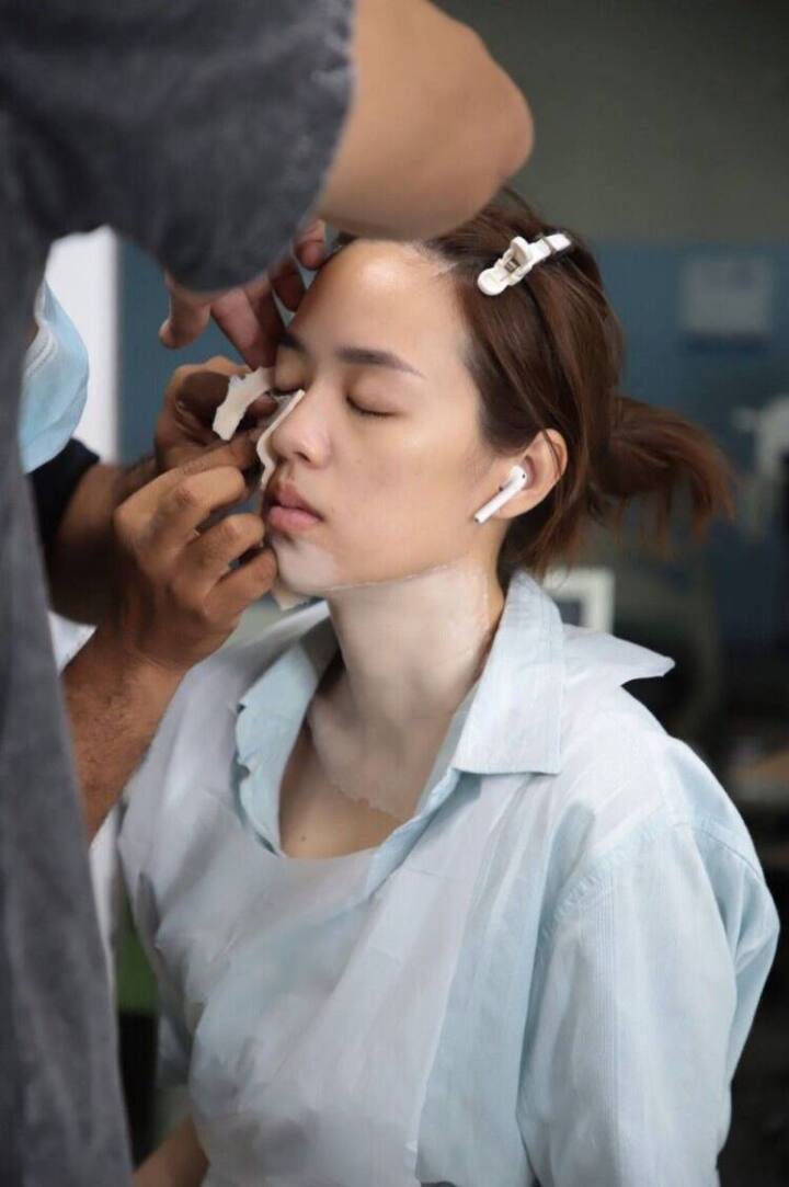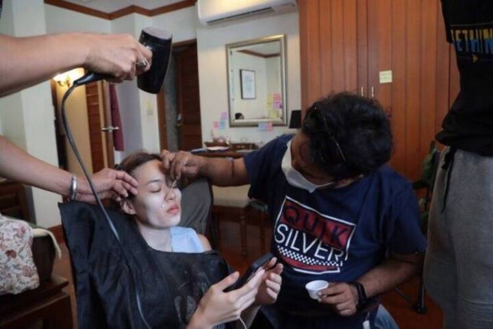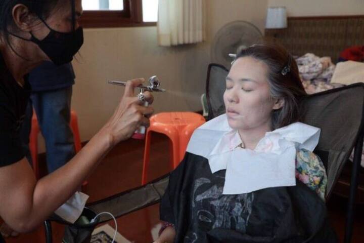 โดยงานนี้ สาวแยมต้องนั่งหลังขด หลังแข็ง ถึง 2 ชั่วโมง ให้ทีมสเปเชี่ยลเอ็ฟเฟ็ค เมคอัพตั้งแต่หัวจรดเท้า โดยเริ่มที่หน้า ที่ต้องแต่งซิลิโคนเป็นคุณป้าหน้าอวบที่เต็มไปด้วยริ้วรอย แถมยังมีเหนียงย้อยๆ คอย่นๆ ซึ่งสาวแยมต้องนั่งหน้านิ่งๆ ห้ามยิ้ม ห้ามหัวเราะ ตลอดการแต่ง และจิบน้ำได้แค่เล็กน้อย และต้องรอจนกว่าซิลิโคนจะเซ็ทตัวเข้าที่ ถึงจะทานข้าวได้ จากนั้นก็ได้เวลาบรรเลงเมคอัพสารพัดริ้วรอย แต้มกระ แต้มฝ้า ทั้งหน้าและตัว เพื่อความสมจริง แถมต้องเสริมพุงให้ดูเป็นคนมีหน้าท้อง และเสริมสะโพกให้ดูเป็นคนหุ่นเผละ เรียกว่า กว่าจะได้ลุคส์คุณป้า สุดเฉิ่ม แสนเชย ทำเอาปวดหลัง ปวดก้นไปหลายวันเลยทีเดียว