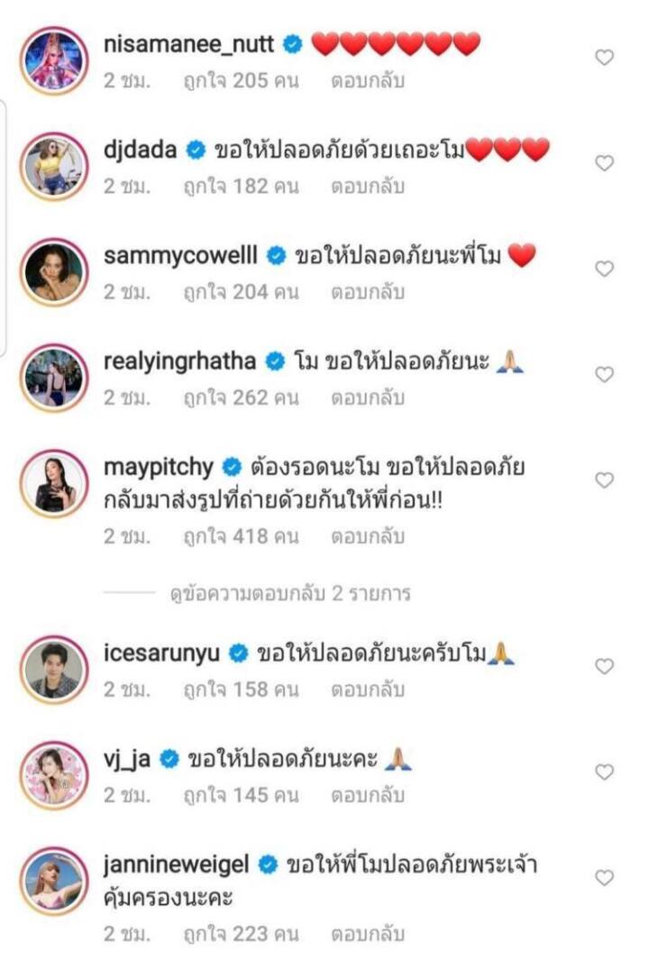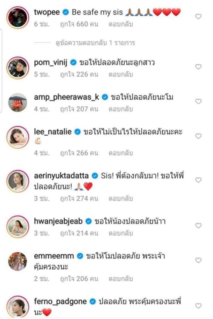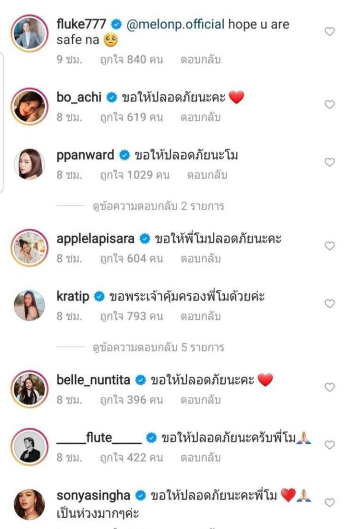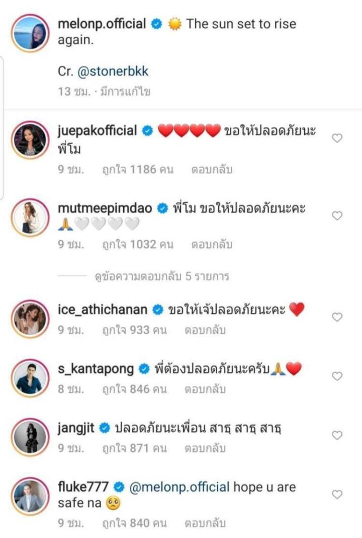 และจากการค้นหาตลอดทั้งคืน ยังไม่มีรายงานว่าพบดาราสาว แตงโม นิดา แต่อย่างใด เหล่า เพื่อนๆ พี่น้องศิลปิน ดารา นักแสดง ในวงการบันเทิง ได้พร้อมใจกันส่งข้อความและกำลังใจ “ขอให้แตงโมปลอดภัย” ผ่านอินสตาแกรมส่วนตัว @melinp.official และหวังว่าจะได้ข่าวดีเร็วๆ นี้