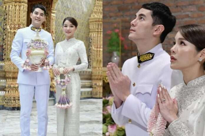 เช้าวันนี้ (๙ ก.ค. ๖๕) ทั้งคู่ได้ถือเอาฤกษ์งามยามดี เข้าเฝ้ากราบขอประทานพรและรับน้ำพระพุทธมนต์จาก สมเด็จพระอริยวงศาคตญาณ สมเด็จพระสังฆราช สกลมหาสังฆปริณายก เพื่อความเป็นสิริมงคลสูงสุดของชีวิตคู่ และประกอบพิธีทางพระพุทธศาสนา โดยมีพระสงฆ์ร่วมเจริญพระพุทธมนต์ พร้อมกับได้ถวายภัตตาหารเช้าและถวายเครื่องสังฆทาน ณ พระวิหาร วัดราชบพิธสถิตมหาสีมารามราชวรวิหาร ภายในงานบรรยากาศชื่นมื่นไปด้วยความรักความอบอุ่นของทั้งสองครอบครัว และมีคุณพ่อคุณแม่ฝ่ายเจ้าสาว “นายสมบัติ – นาง สุพิณ ฟูกลิ่น” และ คุณพ่อคุณแม่ฝ่ายเจ้าบ่าว “นายทองคำ – นางมาลี ภีระ” , คุณปลา ฟินาเล่ พร้อมด้วยญาติคนใกล้ชิดในครอบครัวร่วมยินดี ‘แอร์ -ไอซ์’ กับวันสำคัญการเริ่มต้นชีวิตคู่ร่วมกัน