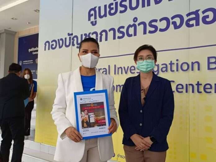 เมื่อเวลา 11.00 น. วันเสาร์ที่ 16 กรกฎาคม 2565 นักร้องลูกทุ่งสาวชื่อดัง “สุนารี ราชสีมา” เจ้าของบทเพลงดัง “กราบเท้าย่าโม” พร้อมด้วย คุณฐิตาภา ธนทรัพย์ปรีชาญ์ CEO หงษ์ทอง.com และ นายปัญญา ทิวาพัฒน์ ทนายความ เดินทางมายังกองบังคับการปราบปรามการกระทำความผิดเกี่ยวกับอาชญากรรมทางเทคโนโลยี (บก.ปอท.) ย่านถนนพหลโยธิน เพื่อเข้าพบเจ้าหน้าที่ กรณีมีเว็บพนันนำภาพเธอ ซึ่งเป็นพรีเซ็นเตอร์ ของ หงษ์ทอง.com ไปใช้แอบอ้าง ทำให้เกิดความเข้าใจผิดและเกิดความเสียหาย