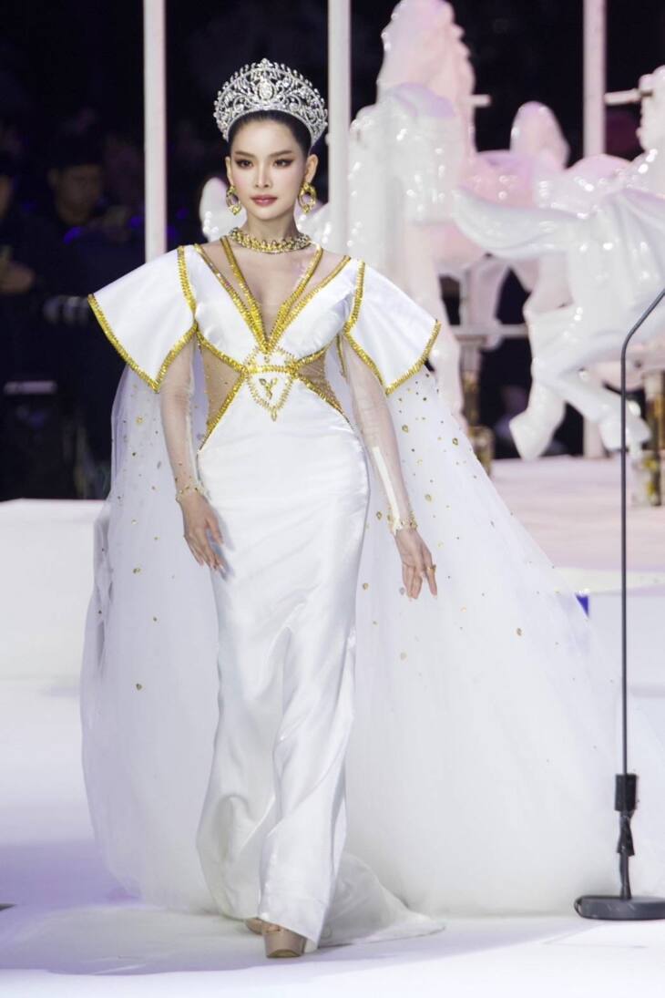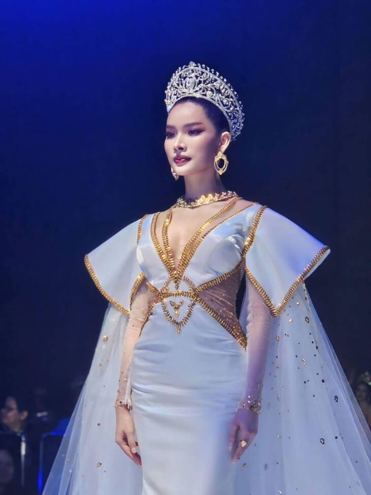 จากนั้นเป็นรอบชุดราตรี เปิดตัวมงกุฏ ซึ่งอายเลือกใส่เป็นชุดสีขาวสง่า เดินออกมาแบบนางพญาสะกดสายตาคนดูทั่วทั้งฮอลล์เลยทีเดียว
