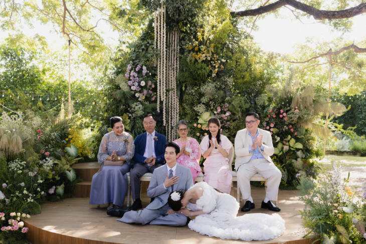 ถือเป็นอีกหนึ่งโมเม้นต์สำคัญในชีวิต ของ พระเอกหนุ่ม “เจมส์-จิรายุ ตั้งศรีสุข” และ แฟนสาว “โฟม-เบ็ญจมาส กิตติพิทักษ์กุล” คู่รักที่ใช้ชีวิตสุดเรียบง่าย ซึ่งทั้งคู่ คบหาดูใจกันมานาน 10 ปี วันนี้ (19 ธค.) ช่วงเช้าที่ผ่านมา “เจมส์” และ “โฟม” เข้าพิธีแต่งงานอย่างอบอุ่น ในบรรยากาศสุดเรียบง่าย และเป็นกันเอง ท่ามกลางความยินดีของ ครอบครัวฝ่ายเจ้าสาว ระนอง โทกุล ,จันทร์จิรา พรหมเทศ ,เมธี กิตติพิทักษ์กุล และ ครอบครัวฝ่ายเจ้าบ่าว เสริมชัย และ โชติกา ตั้งศรีสุข โดยมี พิธีสวมแหวนแต่งงาน ตามประเพณีไทย ณ ร้าน The Reise (เดอะ ไรซ์) โดยชุดแต่งงานของโฟม ในช่วงเช้าวันนี้ มีความพิเศษ ที่โฟมตั้งใจ ติดล็อคเก็ต ที่มีรูปคุณแม่กับโฟม ซึ่งเป็นความตั้งใจพิเศษของเจ้าสาว ที่อยากให้คุณแม่ได้ร่วมอยู่ในวันแห่งความสุขนี้ ทั้งนี้ ภายในงาน ทั้งคู่ได้รับความรัก ความเอ็นดู จาก ญาติ ผู้ใหญ่ที่เคารพ เพื่อนสนิททั้งใน และนอกวงการ อาทิ ผู้บริหารช่อง3 คุณประวิทย์-คุณอรัญญา มาลีนนท์ ,คุณดิว-ปิ่นกมล มาลีนนท์ , คุณตู่-ปิยวดี มาลีนนท์ ,คุณสมรักษ์ ณรงค์วิชัย ,อ๊อฟ พงษ์พัฒน์ – แดง ธัญญา ,ป้าแจ๋ว ยุทธนา ,แหม่ม ธิติมา , คุณสรยุทธ สุทัศนะจินดา ,แอน ทองประสม ,นัท มีเรีย , ไบรท์ พิชญ์ทัฬห์ – โต๋ ศักดิ์สิทธิ์ ,เกรท วรินทร ฯลฯ มาร่วมแสดงความยินดี ในโมเม้นต์แห่งความสุขนี้ ภาพความประทับใจ และบรรยากาศในงานครั้งนี้ เต็มไปด้วยมวลความสุข และรอยยิ้ม ที่ฟูลฟีลจนใจฟูกันถ้วนหน้า