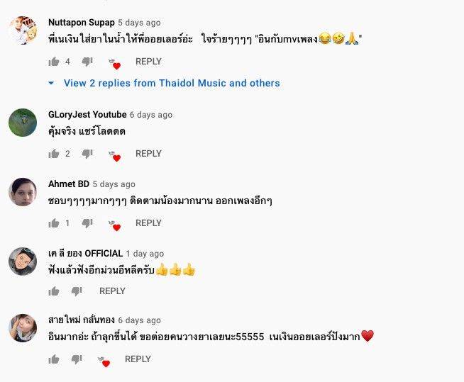 “จากกระแสเพลงที่ปล่อยไปได้รับการตอบรับดีมากๆ เกินคาดหวังเลยจริงๆ ค่ะ ต้องขอขอบคุณแฟนๆ ที่ให้การสนับสนุน และติดตามผลงานของออยเลอร์มาตั้งแต่ก่อนวันที่จะปล่อยเพลง มาจนถึงวันนี้ที่ทุกคน รวมถึงแฟนคลับพี่เนเงินที่เข้ามาคอมเม้นส่งกำลังใจให้กันเยอะเลย บางคนฟังแล้วก็ร้องไห้ตาม บางคนดูเอ็มวีแล้วเข้ามาคอมเม้นปลอบใจออยเลอร์ก็มี ได้ตามอ่านคอมเม้นของทุกคนปลื้มใจมาก จากผลงานที่เราตั้งใจทำออกมา พอได้เห็นทุกคนชอบเพลง และอินไปกับมิวสิควิดีโอแบบนี้ จนทำให้เพลง ไปอยู่กับคนใหม่โลด กลายเป็นเพลงที่ติดเทรนยูทูปถึง 8 วันรวด ออยเลอร์มีความสุขมากๆ หายเหนื่อยเลยค่ะ ขอบคุณจากใจจริงๆ ค่ะ”