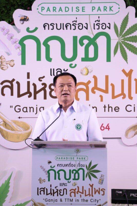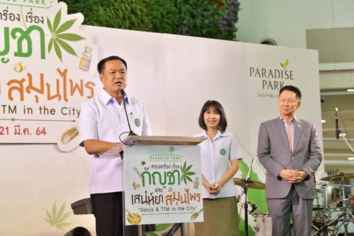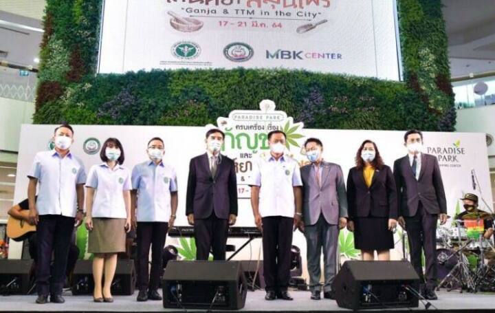 กัญชาขึ้นห้างครั้งแรก ในงานมหกรรมผลิตภัณฑ์กัญชาและสมุนไพรไทย “ครบเครื่องเรื่องกัญชา และเสน่ห์ยาสมุนไพร GANJA & TTM IN THE CITY” ณ พาราไดซ์ พาร์ค ศูนย์การค้าในเครือ เอ็ม บี เค เซ็นเตอร์ โดยความร่วมมือของ กรมการแพทย์แผนไทยและแพทย์ทางเลือก พร้อม 2 องค์กร เครือข่ายพลังภูมิปัญญาการแพทย์ แผนไทย และบริษัท เอ็ม บี เค จำกัด (มหาชน) เพื่อขับเคลื่อนร่วมกันพัฒนา อนุรักษ์และส่งเสริมภูมิปัญญาการแพทย์แผนไทย ขยายโอกาสการเข้าถึงบริการการแพทย์แผนไทยที่มีมาตรฐาน รวมทั้งเพิ่มขีดความสามารถทางธุรกิจให้กับผู้ประกอบการธุรกิจด้านการส่งเสริมสุขภาพด้วยภูมิปัญญาไทย เตรียมความพร้อมในการขยายตลาดทั้งในประเทศและต่างประเทศ