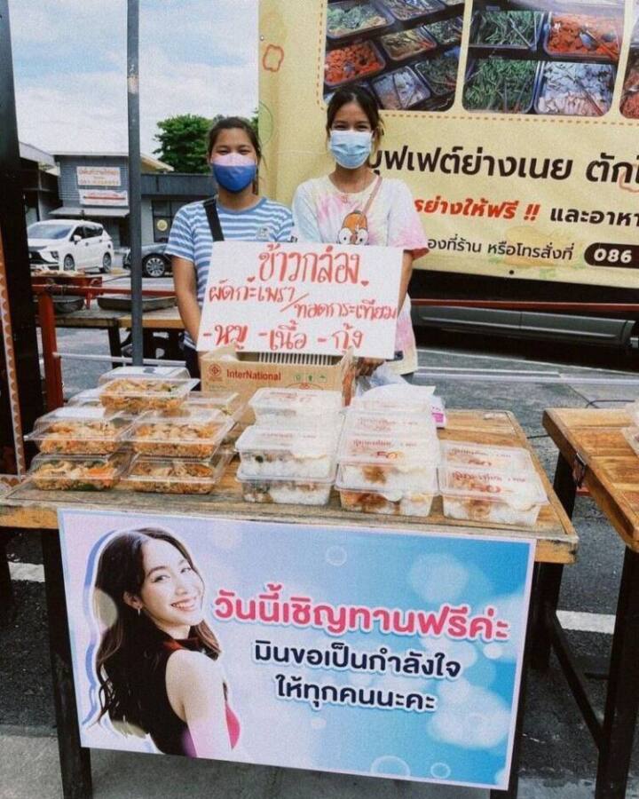 “กับโครงการนี้จริงๆ มินได้มีโอกาสทำมาพักนึงแล้วค่ะ คือตอนแรกอย่างที่ทุกคนได้เห็นว่ามินทำอาหารแจกพี่ๆ น้องๆ ที่แคมป์คนงาน แต่ตอนนี้เราก็ลองปรับมาดูว่าเราสามารถช่วยอะไรได้มากกว่านั้นไหม มินเลยลองเปลี่ยนจากการทำอาหารเองมาเป็นการซื้ออาหาร ไปเหมาอาหารจากพ่อค้าแม่ค้าที่ขายของไม่ได้ดีกว่า แล้วมินก็เอาของที่ซื้อมาแจกจ่ายให้กับพี่ๆ น้องๆ ประชาชนที่ได้รับผลกระทบจากพิษโควิดแทน ถือว่าเราได้ช่วยคนแบบสองต่อเลยค่ะ เพราะบางร้านค้าขายของไม่ได้เลย บางร้านก็ขายได้แต่ก็ไม่พอค่าเช่าที่