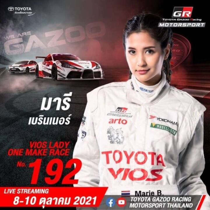 โดย 2 นักแข่ง Toyota Racing Star team นำโดย มารี เบรินเนอร์ จะลงแข่งขันในรุ่น วีออส เลดี้ วันเมคเรซ ด้วยรถหมายเลข192 เผยถึงความรู้สึกก่อนแข่งครั้งแรกในปีที่ 2 ว่า “ มารี ตื่นเต้นที่ได้กลับมาแข่งอีกครั้งค่ะ มั่นใจว่าใส่เต็มร้อยแน่นอน ตอนนี้เตรียมใจพร้อมเต็มที่กับกีฬามอเตอร์สปอร์ตและมีความตั้งใจสูงมากและต้องใช้สมาธิอีกด้วย มารีจะตั้งใจทำให้เต็มที่นะคะไม่ว่าผลจะออกมาเป็นแบบไหนก็ภูมิใจค่ะ”