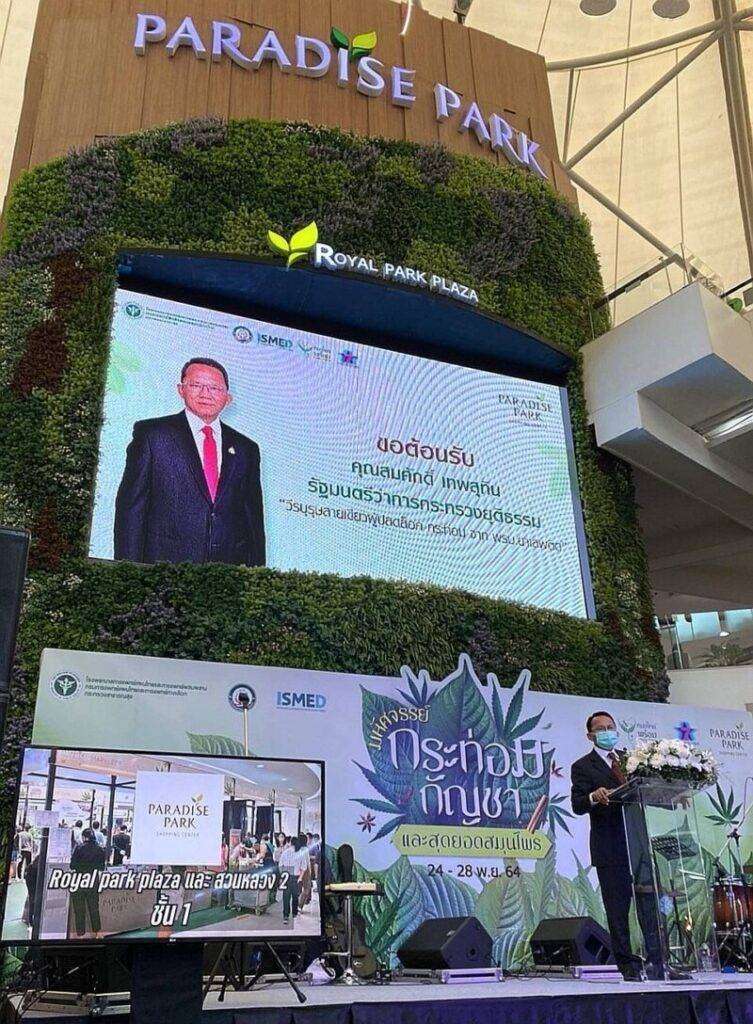 บริษัท เซเว่น สตาร์ สตูดิโอ จำกัด ร่วมกับ ศูนย์การค้าพาราไดซ์พาร์ค, กรมการแพทย์แผนไทยและการแพทย์ทางเลือก โดย นพ.ยงยศ ธรรมวุฒิ อธิบดีกรมฯ, เครือข่ายพลังภูมิปัญญาการแพทย์แผนไทย, โครงการหมอไทยพร้อม, ISMED สถาบันพัฒนาวิสาหกิจขนาดกลางและขนาดย่อม จัดงาน “มหัศจรรย์กระท่อมกัญชาและสุดยอดสมุนไพรไทย” ณ ลานรอยัล พาร์คพลาซ่า ชั้น1 ศูนย์การค้าพาราไดซ์พาร์ค ศรีนครินทร์