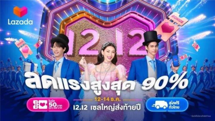 เทศกาลช้อปปิ้งออนไลน์ได้เดินทางมาถึงเดือนสุดท้ายของปีกันแล้ว! โดยลาซาด้ายังคงจัดเต็มแม็กซ์กับการเฉลิมฉลองแคมเปญช้อปออนไลน์ครั้งยิ่งใหญ่ “12.12 Grand Year-End Sale เซลใหญ่ส่งท้ายปี” เสิร์ฟความสุขกันอย่างต่อเนื่อง เอาใจนักช้อปไทยให้ได้เลือกของขวัญเป็นรางวัลให้ตัวเอง และแบ่งปันคนที่รักในเทศกาลแห่งความสุขปลายปีขนโปรโมชันมาแบบอัดแน่น ไล่มาตั้งแต่ส่วนลดสูงสุดกว่า 90% พร้อมส่วนลดรวม 6 ต่อจุกๆ! ไม่ว่าจะเป็นลาซาด้าโบนัส 50 บาท เมื่อช้อปทุกๆ500 บาท คูปองส่งฟรีทั่วไทย และพบกับสินค้าลดราคาแบรนด์ดังใน LazMall กับ Crazy Brand Mega Offer เฉพาะเที่ยงคืน – ตีสอง พร้อมชวนนางเอกสาวสวย เบลล่า – ราณี แคมเปน และสองหนุ่มสุดฮอตชวนกรี๊ดอย่าง ไบร์ท – วชิรวิชญ์ ชีวอารี และวิน – เมธวิน โอภาสเอี่ยมขจร รับหน้าที่เป็นแบรนด์พรีเซ็นเตอร์ในแคมเปญ Lazada 12.12 นี้ พร้อมแนะทริคชวนช้อป เผื่อช่วยไกด์นักช้อปให้เตรียมตัวช้อปกันให้หนำใจ นานถึง 3 วันเต็ม ระหว่างวันที่ 12 -14 ธันวาคม นี้ เท่านั้น!