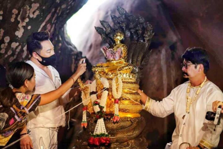 มดดำ ควงคุณพ่อ บวงสรวงพระอุปคุต เปิดถ้ำ ที่สะดือแม่น้ำโขง บึงกาฬ