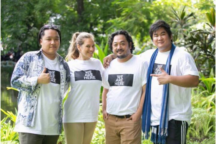 บรรยากาศในงานบวงสรวงเปิดตัวภาพยนตร์ “We Are Here” เป็นไปอย่างเรียบร้อยราบรื่นสมบูรณ์ ท่ามกลางบรรยากาศสวนสวยสไตล์อังกฤษของ The Pud English Garden โดยมีคุณ ลี ทองคำ โปรดิวเซอร์หนัง นำทีม ทุกท่านทั้ง Cherie Theresa Executive producer of AlterEgo Production) , จิต กำเนิดรัตน์ ผู้กำกับภาพยนตร์ ,ซัน ศุภณัฐ ผู้เขียนบท และทีมนักแสดง หญิง รฐา , เอสเธอร์ , พีท ทองเจือ , ชิน ชินวุฒ ,น้ำหวาน กรรณาภรณ์ , เอก โอรี , มากิ มาชิดา พร้อม Jimmy Dempster ถ่ายรูปร่วมกันในพิธีเป็นอันเสร็จสิ้นพิธีการบวงสรวงภาพยนตร์