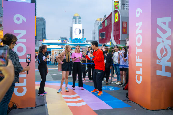 HOKA® ประเทศไทย จัดงานใหญ่ 4 วัน 4 กิจกรรม เปิดตัวรองเท้า “HOKA Clifton 9” พัฒนาการของรองเท้าวิ่งรุ่นใหม่ล่าสุดจากตระกูล Clifton ของ HOKA จากสาย Performance สู่ความเป็น Lifestyle สวมใส่ง่ายในชีวิตประจำวัน ภายใต้คอนเซ็ปต์ “Enter Running Bliss”เนรมิตลานสแควร์ A ศูนย์การค้าเซ็นทรัลเวิลด์ ให้กลายเป็นลานกิจกรรมขนาดใหญ่ของคนรักการวิ่ง โดยภายในงานยังได้รับเกียรติจาก นายพรศักดิ์ ชินวงศ์วัฒนา (CEO) ประธานเจ้าหน้าที่บริหาร บริษัท เรฟ อีดิชั่น จำกัด เป็นประธานในงาน และกิจกรรมสุดเอ็กซ์คลูซีฟ ที่ HOKA ยังคว้าตัวสองสาวคู่จิ้นสาย GL ฟรีน สโรชา จันทร์กิมฮะ และ เบ็คกี้ รีเบคก้า แพทริเซีย อาร์มสตรอง จากซีรีย์สุดฮ็อต ทฤษฎีสีชมพู มาร่วมงาน พร้อมเหล่าแฟนคลับ กับการรวมตัวของเหล่าสายช้อปพิชิตยอด Top Spender กันสุดฟินกับโมเมนต์สุดประทับใจที่ผ่านมา