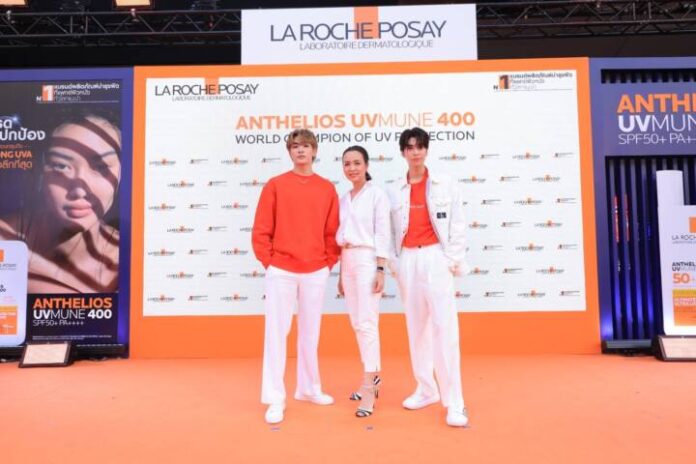 กลุ่มผลิตภัณฑ์กันแดดใหม่ La Roche-Posay Anthelios UVMUNE400 ที่มาพร้อมกับสารกันแดดใหม่ Mexoryl 400 เพื่ออัพเกรดการปกป้องผิวจากรังสี UV ครอบคลุมไปจนถึงช่วง 380-400 นาโนเมตร หรือเรียกว่า “ULTRA-LONG UVA” พร้อมพบกับ 2 นักแสดงหนุ่มสุดฮอต “จุง – อาเชน ไอย์ดึน” และ “ดัง – ณัฎฐ์ฐชัย บุญประเสริฐ” ร่วมแชร์ประสบการณ์การเลือกใช้ผลิตภัณฑ์กันแดด และการันตีประสิทธิภาพ #กันแดดยืนหนึ่งจบถึงUltraLongUVA ที่สุดของการปกป้องรังสียูวีที่เหนือกว่า! ณ บริเวณลานทางเชื่อม BTS สถานีสยาม ชั้น 3 ศูนย์การค้าสยามสแควร์วัน