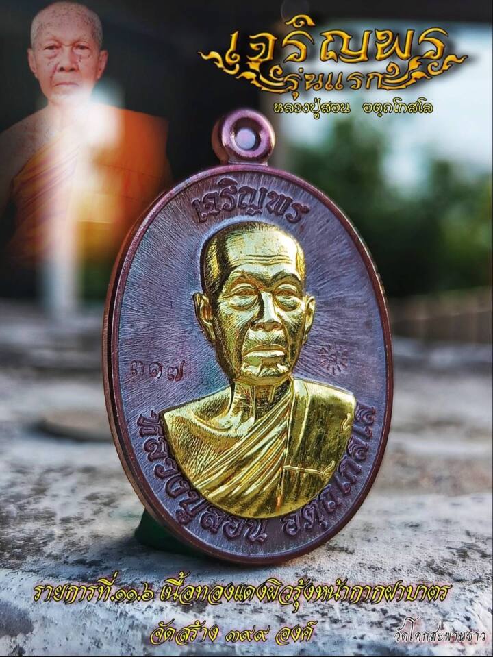 เรียกได้ว่าพลังแห่งบุญ พลังแห่งความศรัทธา จึงทำให้ญาติโยมมากันล้นวัดเลยทีเดียว สำหรับพิธีพุทธาภิเษก ปลุกเสกเหรียญเจริญพร รุ่นแรก โดย หลวงปู่สอน อัตถโกสโล วัดโคกสะพานขาว อ.อรัญประเทศ จ.สระแก้ว ซึ่งภายในพิธีมีพระเกจิคณาจารย์ร่วมนั่งปรก อธิฐานจิตมากมาย พร้อมทั้งเปิดให้ผู้ที่มีจิตศรัทธาและลูกศิษย์ลูกหาได้ร่วมเช่าบูชา อีกทั้งยันต์เรียกทรัพย์ ฝ่ามือเมตตามหานิยมเรียกทรัพย์จับเงินล้าน โดยคำที่หลวงปู่สอนท่านให้ท่องเอาไว้คือคำว่า “ได้รับ ได้รับ ได้รับ” มีความหมายว่าให้ได้รับแต่สิ่งที่ดี ๆ ตลอดเวลา ซึ่งงานนี้มีคุณโก้ ทีมงานเจริญพร คุณกิ๊ฟ คุณชัยวัฒน์ และบรรดาคณะศิษย์จัดถวาย