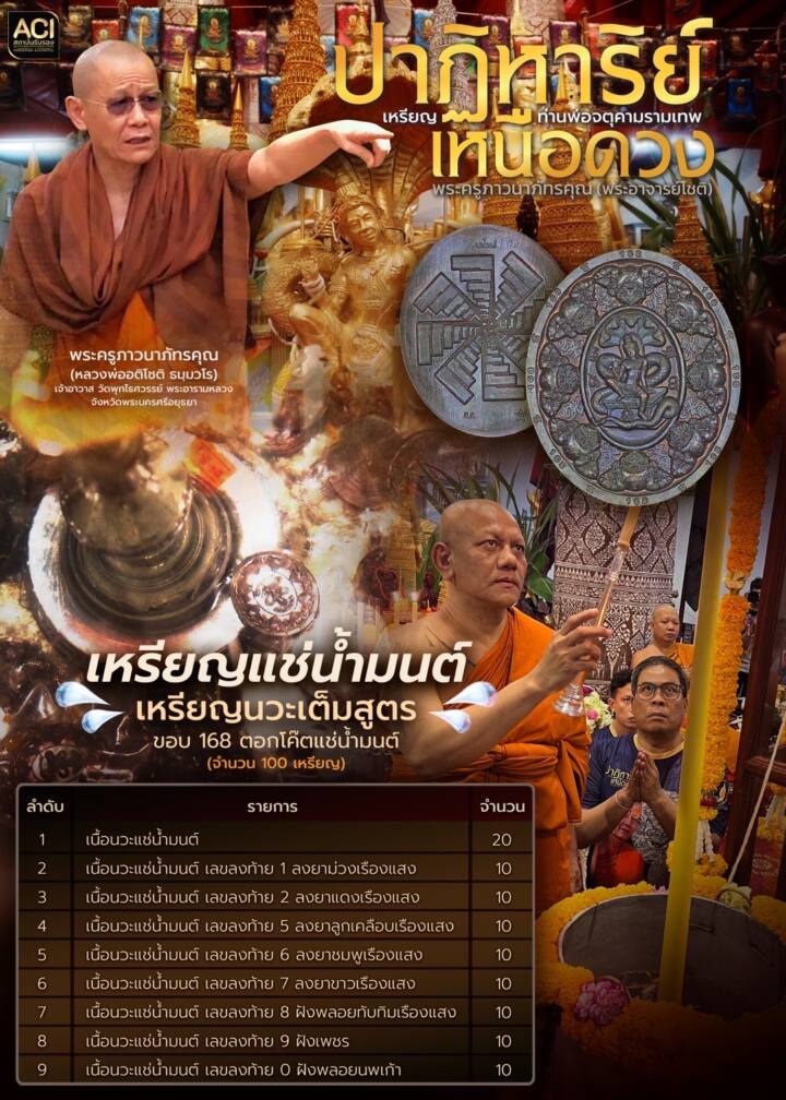 “พระอาจารย์อติโชติ ธมฺมวโร” ตำนานเหนือดวง แห่งวัดพุทไธศวรรย์ พร้อมด้วยลูกศิษย์อาทิ “ป๋อง สุพรรณ” เซียนพระชื่อดังรวมไปถึง “ติ๊งโน๊ต ฐิติพงศ์” และเหล่าลูกศิษย์ทั้งคนไทยและต่างประเทศที่ศรัทธาร่วมเข้าพิธีบวงสรวงมวลสาร มหาชนวนวัตถุมงคล “ท่านพ่อจตุคามรามเทพ” รุ่นปาฏิหาริย์ เหนือดวง องค์ราชันย์ดำจตุคามรามเทพ จ้าวแห่งทะเลใต้ พร้อมพระเกจิอาจารย์ แห่งโชคลาภและความสำเร็จ ทั้ง 7 รูป “พระครูนิวาตธรรมาทร หลวงพ่อยูร สคารโว” วัดพนมเศษเหนือ, “พระราชภาวนาวชิรคุณ” (หลวงปู่จื่อ พันธมุตโต) วัดเขาตาเงาะอุดมพร, “พระครูประโชติปัญญากร” (หลวงพ่อคูณ วรปญฺโญ) วัดบัลลังก์, “หลวงปู่สมาน สุธมฺโม” ที่พักสงฆ์ เขายางหัก, “พระครูภาวนาภัทรคุณ” (หลวงพ่ออติโชติ ธมฺมวโร) เจ้าอาวาสวัดพุทไธศวรรย์, “พระอาจารย์ประสูติ ปิยธัมโม” วัดถ้ำพระพุทธโกษีย์, “พระอาจารย์ธรรมนูญ ธมฺมโชโต” วัดเขากุน