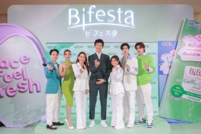 สำหรับบรรยากาศงาน “Bifesta Face Feel Fresh” จัดโดย บิเฟสต้า ประเทศไทย ส่งต่อแรงบันดาลใจและมอบประสบการณ์ใหม่ให้ทุกคนได้เอนจอยไปกับทุกการขับเคลื่อนเพื่อเป็นตัวเองในเวอร์ชั่นที่ใช่ที่สุด พร้อมแนะนำ “บิเฟสต้า ไมเซล่า เคลนซิ่ง ชีท ซีรี่ส์” (Bifesta Micellar Cleansing Sheet Series) ด้วยการแนะนำโดย คุณเท็ดสึโอะ วาคาบายาชิ ผู้จัดการทั่วไป บริษัท แมนดอมคอร์ปอเรชั่น (ประเทศไทย) จำกัด ให้เกียรติร่วมเป็นประธานในงาน พร้อมกับ คุณทิฆัมพรเพียรวิจารณ์พงศ์ ผู้จัดการฝ่ายการตลาด, คุณสุฐิพัฒน์ กอกีรติธนาภัทธ์ ผู้ช่วยผู้จัดการผลิตภัณฑ์ บริษัท แมนดอมคอร์ปอเรชั่น (ประเทศไทย) จำกัด เสริมความปังคว้า 2 หนุ่มคู่จิ้น ปอนด์ ณราวิชญ์ และ ภูวิน ภูวินทร์ และนักแสดงชื่อดัง วิววรรณรท ซึ่งแต่ละคนไม่เพียงเผยผิวใสออร่าแรงสะดุดตาเท่านั้น แต่ยังมาพูดคุยถึงเคล็ดลับขั้นตอนสำคัญของการเตรียมผิวหน้าทำความสะอาดให้พร้อมเข้าสู่การบำรุงในขั้นตอนถัดไป เพื่อให้มีผิวใสสุขภาพดีอ่อนเยาว์จนใครๆต่างตกหลุมรัก