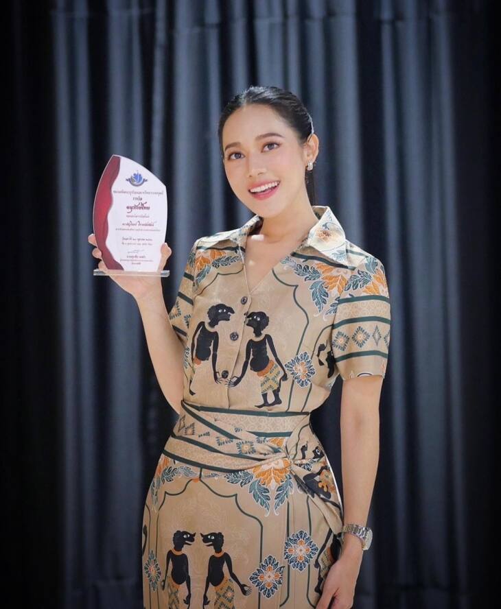ด้านนางเอกสาว ทับทิม อัญรินทร์ ได้เผยความรู้สึกว่า ขอบคุณด้วยนะคะ ดีใจมากๆ ที่ได้รับรางวัลด้านการแต่งกายด้วยผ้าไทย ซึ่งจริงๆ ต้องบอกว่าเราดีใจที่ได้รับรางวัล เพราะเป็นสิ่งที่เราทำมาตลอดเรื่อยๆ อยู่แล้ว แล้ววันนี้มีคนเห็นในสิ่งที่เราทำเห็นความตั้งใจเรา ก็ถือว่าเป็นแรงสนับสนุนในการทำต่อไปเรื่อยๆ ของเรา แล้วอยากจะฝากทุกๆ คนว่าตอนนี้กระแสซอฟพาวเวอร์มาแรงมากๆ นะคะ วัฒนธรรมไทย อะไรต่างๆ โดยเฉพาะผ้าไทยก็มาแรงมากเหมือนกัน ตอนนี้มีหลายหน่วยงาน ไม่ว่าจะเป็นภาครัฐหรือเอกชน ช่วยกันผลักดันซอฟพาวเวอร์ของไทย อยากให้ทุกคนอนุรักษ์ความเป็นไทยเยอะๆ โดยเฉพาะผ้าไทย อยากให้ทุกคนสวมใส่ผ้าไทยด้วยความภาคภูมิใจ