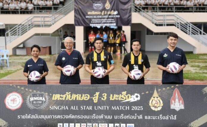 เป็นกิจกรรมดีๆ ที่จัดขึ้นอย่างต่อเนื่องมาเป็นปีที่ 10 สำหรับฟุตบอลการกุศล ‘สิงห์ออลสตาร์’ ปีนี้ผู้ก่อตั้งทีมอย่าง คุณต๊อด ปิติ ภิรมย์ภักดี ผนึกกำลังกับ 3 สถาบันทางการแพทย์ชั้นนำของประเทศ ได้แก่ สำนักวิชาแพทยศาสตร์ มหาวิทยาลัยแม่ฟ้าหลวง, คณะแพทยศาสตร์ มหาวิทยาลัยขอนแก่น และ คณะแพทยศาสตร์ มหาวิทยาลัยศรีนครินทรวิโรฒ วิทยาเขตองครักษ์ เปิดศึกดวลแข้งภายใต้แนวคิด ‘เตะกับหมอ สู้ 3 มะเร็ง’ นำรายได้สมทบทุนออกหน่วยตรวจคัดกรองมะเร็ง 3 ชนิดที่เป็นภัยร้ายอันดับต้นๆ ของคนไทย ได้แก่ มะเร็งเต้านม มะเร็งท่อน้ำดี และมะเร็งลำไส้ ซึ่งหากตรวจพบเจอเร็วก็จะช่วยเพิ่มโอกาสในการรักษาให้หายขาด ลดความรุนแรงและลดอัตราการเสียชีวิต สร้างความตระหนักให้ประชาชนคนไทยหันมาใส่ใจสุขภาพมากขึ้น