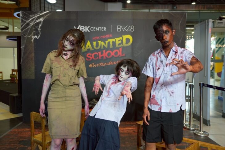 MBK Center Haunted School โรงเรียนสยองขวัญ จะพาผู้เข้าชมดำดิ่งสู่เรื่องราวโศกนาฏกรรมในรั้วโรงเรียน ที่ถูกถ่ายทอดผ่าน 4 ห้องประสบการณ์สุดเฮี้ยนเต็มไปด้วยเรื่องราวชวนขนหัวลุก เปิดประตูกระตุ้นต่อมกรี๊ดตั้งแต่วันพฤหัสบดีที่ 23 ตุลาคม – วันอาทิตย์ที่ 2 พฤศจิกายน 2568 ในเวลา 11.00 น. – 20.00 น. แบ่งตารางคาบเรียนให้เข้าชม ดังนี้ คาบที่ 1 เวลา 11.00 น. – 12.30 น. / คาบที่ 2 เวลา 13.00 น. – 15.00 น. / คาบที่ 3 เวลา 16.00 น. – 17.00 น. / คาบที่ 4 เวลา 17.00 น. – 18.30 น. และ คาบที่ 5 เวลา 19.00 น. – 20.00 น. ร่วมสัมผัสประสบการณ์สุดสยองขวัญและถ่ายภาพในบรรยากาศสุดพิเศษนี้ได้ ฟรี! เพียงกดรับสิทธิ์ผ่าน MBK Plus เตรียมตัวมาท้าทายความกล้าและสนุกไปกับความหลอนที่เอ็ม บี เค เซ็นเตอร์ จัดเต็มให้ในฮาโลวีนปีนี้!!