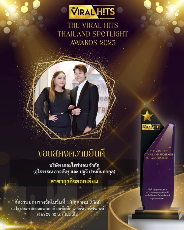 ถือเป็นอีกหนึ่งงานมอบรางวัลสุดปัง และวันแห่งเกียรติยศ ของนักธุรกิจ นักบริหาร เจ้าของแบรนด์ และศิลปินคนบันเทิง สำหรับงาน “The Viral Hits Thailand Spotlight Awards 2025” ที่จัดโดย สำนักข่าว The Viral Hits ภายใต้บริษัท Besties World Entertainment Co., Ltd. เพื่อเชิดชูเกียรติ เหล่าผู้สร้างสรรค์ธุรกิจ แบรนด์สินค้า และเพื่อเป็น แรงผลักดัน ให้ก้าวพัฒนาต่อไปด้วยคุณภาพที่ดี อย่างไม่หยุดยั้ง ในทุกๆ ด้าน พร้อมก้าวข้ามขีดจำกัด เพื่อบรรลุความสำเร็จในวงการบันเทิง และดิจิทัล ไปเมื่อวันที่ 18 ต.ค. ที่ผ่านมา