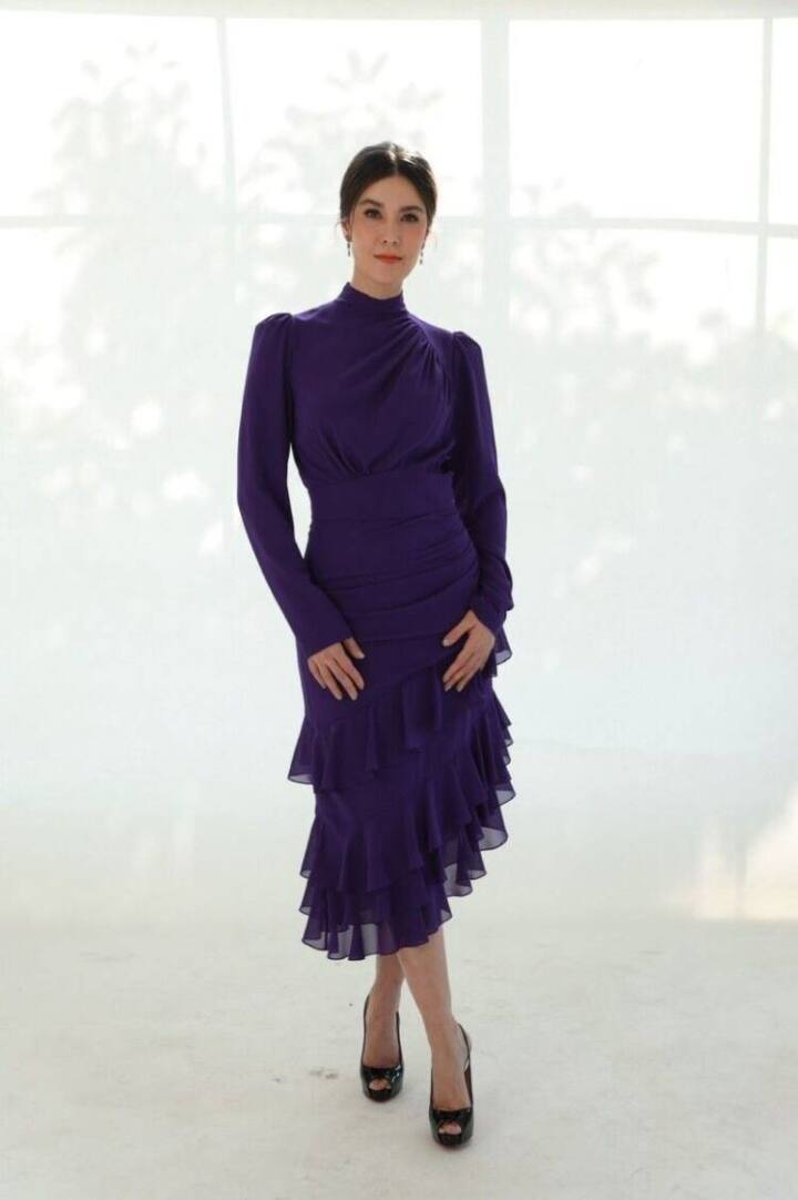 “โดยรวมรูปใบหน้าของคุณธัญญ่าคือสวยหมดทุกอย่าง แต่ที่ชอบมากที่สุดคือจมูก มีการผสมผสานกันจะลูกครึ่งก็ได้ หรือจะมีความเป็นไทยก็ใช่ และพอจมูกสวยอยู่แล้ว เราก็จะเน้นคิ้วกับตาแทน แต่งให้ดูโดดเด่นขึ้นมารับกับจมูก บวกกับสโลแกน#เมียยืนหนึ่ง ที่แต่งแล้วต้องให้สามีหรือคนข้างๆ เห็นแล้วหลงรัก เพราะการที่เราจะยืนหนึ่งได้ เราต้องมีอะไรมัดใจ ดึงดูดเขาถ้าเราปล่อยตัวเองให้ดูโทรมแล้วจะมายืนหนึ่ง มันดูไม่เมคเซ้นส์ ในฐานะที่เราเป็นเมีย เราต้องดูแลตัวเองให้ดีที่สุด เพื่อเวลาคนที่เขามองมา เขาจะได้สบายตา แต่เราก็ไม่ได้จำเป็นต้องแต่งหน้าในโทนดุ แค่ใช้วิธีเขียนหางตาให้กระชากเชิ่ดขึ้นไป ซึ่งเขียนเฉพาะตาบน ทำให้ตาดูเบิกกว้างมากขึ้น แต่ไม่ได้ทำให้ดูดุ ซึ่งจะดูทรงพลังมากขึ้น และอย่างที่บอกว่าคุณธัญญ่าดูแลผิวตัวเองดีมาก เลยทำให้การแต่งหน้าด้วยสีม่วงลาเวนเดอร์ดูสดชื่นขึ้นตาม #ม่วงครองเมือง บวกกับคุณธัญญ่าให้อิสระในการดีไซน์ออกแบบว่าจะให้ออกมาในรูปแบบไหน ยิ่งแต่งก็ยิ่งดูเด็กลงจริงๆ“